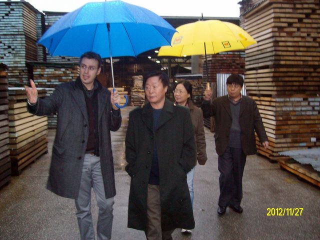 李华副董事长一行冒雨,在Garbellotto公司总经理安东尼奥的陪同下,从酒桶的原料、木材加工到酒桶制作的每一环节进行了长达3个多小时详细的考察。考察后在与Garbellotto公司老板Mr.Garbellotto会谈中,李华副董事长介绍了杨凌示范区、伟德bv1946和中国葡萄酒的生产情况,王华经理介绍了bevictor伟德官网教学、科研情况,双方并就进一步开展合作研究等事项进行了友好会谈。王华经理向Mr.Garbellotto及安东尼奥总经理赠送了礼物。