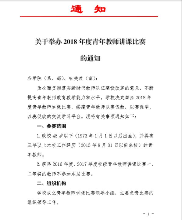 关于举办2018年度青年教师讲课比赛的通知