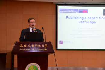 Harrison教授一行还在北绣山活动中心南报告厅为公司师生带来了精彩的报告。Roland Harrison教授介绍了新西兰林肯大学和新西兰葡萄酒产业的发展历史与现状。Tian Bin博士介绍了林肯大学葡萄栽培与酿造专业以及葡萄栽培与酿造研究中心的基本情况,它们的研究内容涵盖了从土地到酒杯(from soil to glass),与公司李华教授提出的“从土地到餐桌”有着同样的涵义。Tian Bin博士还分享了他在病原相关蛋白(pathogenesis-related (PR) proteins)方面的研究进展,与同学进行了充分的交流。Charles Brennan教授作为《international journal of food science & technology》杂志的主编,介绍了在科技文章写作和投稿方面的经验,强调了文章的内容要有科学性和创新性,同时也必须有良好的英语写作能力,才能将实验及研究结果完美呈现出来。同时还强调了抄袭和一稿多投都属于学术不端行为,对作者本人及单位都有极其恶劣的影响,强调科学研究一定要真诚和诚实。此次报告是国际同行间的一次学术交流,也是一次学术道德教育。