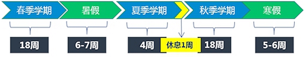 陈遇春:全年教学40周,假期12周。秋季学期一般9月初开学,春季学期3月初开学,夏季学期安排在8月初与秋季学期衔接。