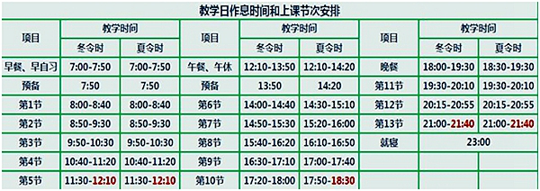 每节课40分钟,每天排课13节。小课间休息10分钟,大课间休息20分钟。