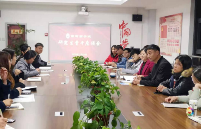 会议伊始,王雅楠从学院研究生硕博点的建立与发展、科研团队平台、研究生基本情况、研究生骨干队伍建设等方面详细地介绍了学院研究生的相关情况。随后,徐三友鼓励同学们积极提出想法并与研究生们互相进行自我介绍,师生在轻松、愉快的氛围中加深彼此了解。在发言环节中,研究生们从党团活动、学术报告、就业及生活等方面表达了当前遇到的困难和问题,提出了建设性的意见和建议。2020级博士王志磊提出,希望学院可以搭建更多平台,创造与其他学院研究生共同开展跨学科研究的机会。2018级学硕官凌霄讲到,近年来毕业生就业压力不断增大,希望学院能够在求职目标的确立和就业能力的提高方面学院给予更多帮助和支持。