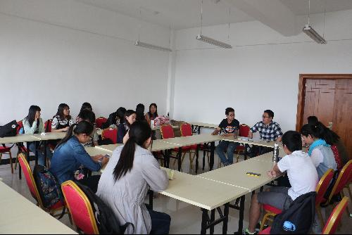 5月4日青年节之际,2013级1班班主任赵星宇来到班级同学中间,与大家一起欢度青年人的节日。