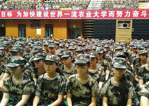 上午8点50分,公司新生们抵达南校体育馆,按序就座之后,在教官的指挥下,连队同学唱起了军歌---团结就是力量,嘹亮歌声响彻整个体育馆。
