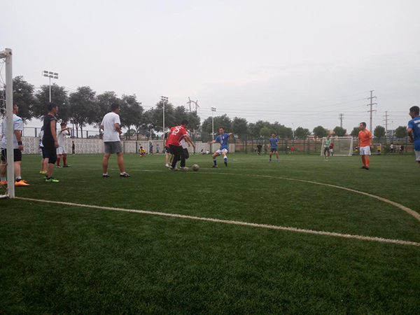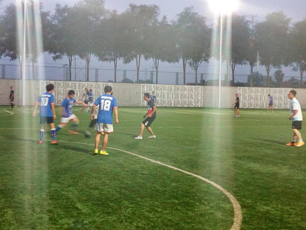 队伍划分上,大一人员不变,学院足球队员则是自由上阵,经过简单的热身后,正式开始比赛。