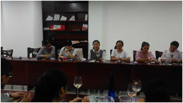 桃红色的起泡酒乘在晶莹剔透的杯子里,畅游书海的读友们汇聚一堂。主持人从活动主题入手,引司马相如当垆旧典诠释酒赋之醉美;李亚楠老师吐珠玑玉言,开葡酒学院四方学子吟哦诗歌之雅兴。同学们纷纷离座而起,各自交流独具一格的阅读成长体验,一时书香弥漫。又佐以美酒,落入腹中却不见回响,使人心旷神怡。