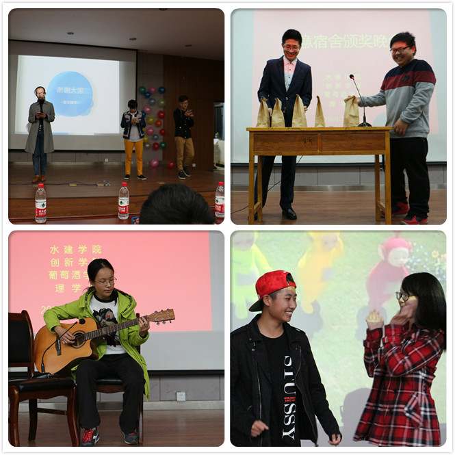 典礼伊始,水建学院为同学们带来了有趣的魔术,点燃了全场的气氛。随后,十三个获奖宿舍依次进行了成果展示。他们以PPT讲解的形式,图文并茂、生动详细地介绍了自己独特的思维,并与其他宿舍进行了交流与学习。其间还穿插了对宿舍成员的介绍,体现了宿舍成员间宝贵的友谊和家人般的温情。