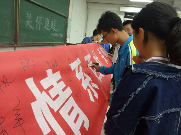 活动期间,同学们积极参与,纷纷在明信片上书写下自己对孩子们最真挚的问候和最真诚的祝愿,并激励山区孩子们要努力学习,不畏艰难,克服生活上的困难,自立自强。活动结束后,每一位在场的同学都在条幅上郑重地签下自己的名字,并表示要以后要珍惜现在优越的生活,发奋图强,去援助更多出于贫苦饥饿边缘的人们。五十三张明信片代表着我们bevictor伟德官网对西社学校五十三个员工最真挚的问候与祝福,条幅上一百多名同学的签字蕴含着西农学子对于山区孩子们的无微不至的关心与鼓励。