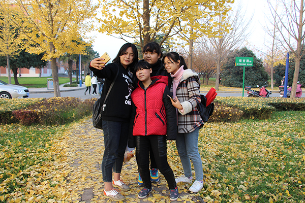 正值银杏叶落,金黄的叶子展示着秋末的美丽。西社员工看到如此漂亮的校园一隅,亦是十分开心。大手拉小手,谈谈知心话,叙叙暖心事,好不温暖。一名西社员工临走前把自己随身携带的刻了自己名字的手环,送给了陪伴自己两天的志愿者姐姐。美好的秋日,天真的少年,一切都是那么美好。