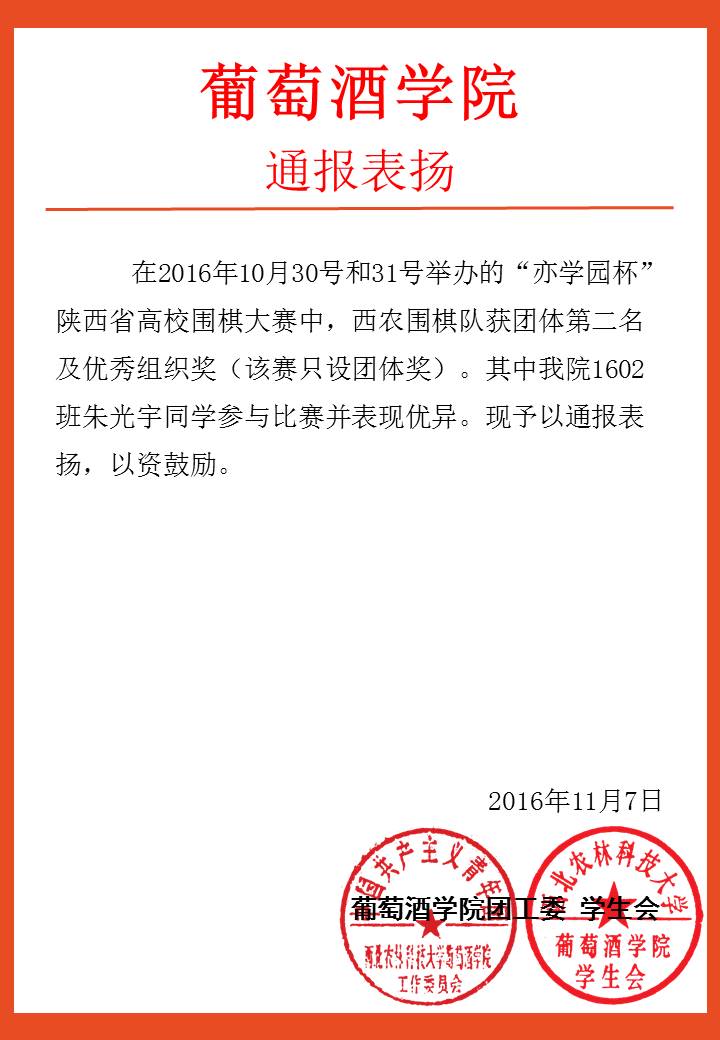 葡萄酒团(2016)37号通报表扬