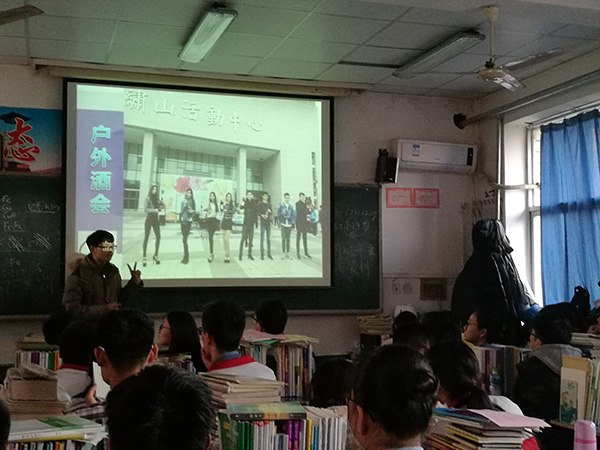 在班主任带领下,我们进入班级开始宣讲。隔壁班同学纷纷闻讯而来,在班级后面围了一堵人墙。大学是每个高三学子最为憧憬的地方,我们先向同学们介绍伟德bv1946:从同学们最为感兴趣的大学环境入手,介绍公司的地理位置,创办时期的历史故事, 以及博览园、农高会等学校周边的旅游景点以及大型活动,向同学们展示了西北地区的独特风光。接着我们向同学们介绍公司的招生政策,亲民的招生政策让同学们放下心来。丰富的老员工活应与美酒相伴,bevictor伟德官网以及葡萄酒爱好者协会的室内外酒会让同学们憧憬不已。当然,介绍公司怎么能少的了让每个西农学子魂牵梦绕的西农苹果、土豆炖牛肉?
