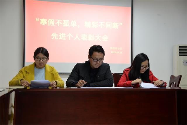 3月28日,“寒假不孤单,精彩不间断”系列活动表彰大会在bevictor伟德官网615会议室举办。学院团工委书记赵星宇、全体辅导员、相关员工干部以及全体获奖人员参加大会。会议由团工委书记赵星宇主持。