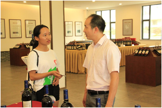 7月25日上午西农赴广西葡萄酒酒庄调研队拜访了专门从事野生毛葡萄种植和野生葡萄酒酿造的广西中天领御酒庄。酒庄位于山脚下,四面环山,环境优美,地理位置得天独厚。酒庄的韦部长热情地接待了小队并带领参观了酒庄的展示厅和生产流水线以及酒窖。展示厅上展示的葡萄酒按浓度大小排列,高贵典雅,展示它们独特的魅力。据韦部长介绍,由于毛葡萄的酸度较高,酒庄的酒主要分为干红和半甜两种,而酒庄的山葡萄酒的度数都比较低,价格也比较低廉。酒庄承担着“金融精准扶贫,助推产业发展”的责任,通过发动当地民众种植毛葡萄来推动当地经济发展,虽然有国家政策扶持,但发展仍是后劲不足。