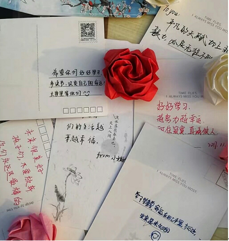 活动中期,工作人员利用周末于北校西区雕塑进行持续一整天的爱心义卖,倡导大家购买物美价廉的爱心物资。在得知此次活动的目的意义后,很多同学都表示十分支持此类活动。除了挑选自己需要的爱心物资外,同学们还在明信片上写下暖心的话语,激励受资助的小员工努力学习、阳光生活。