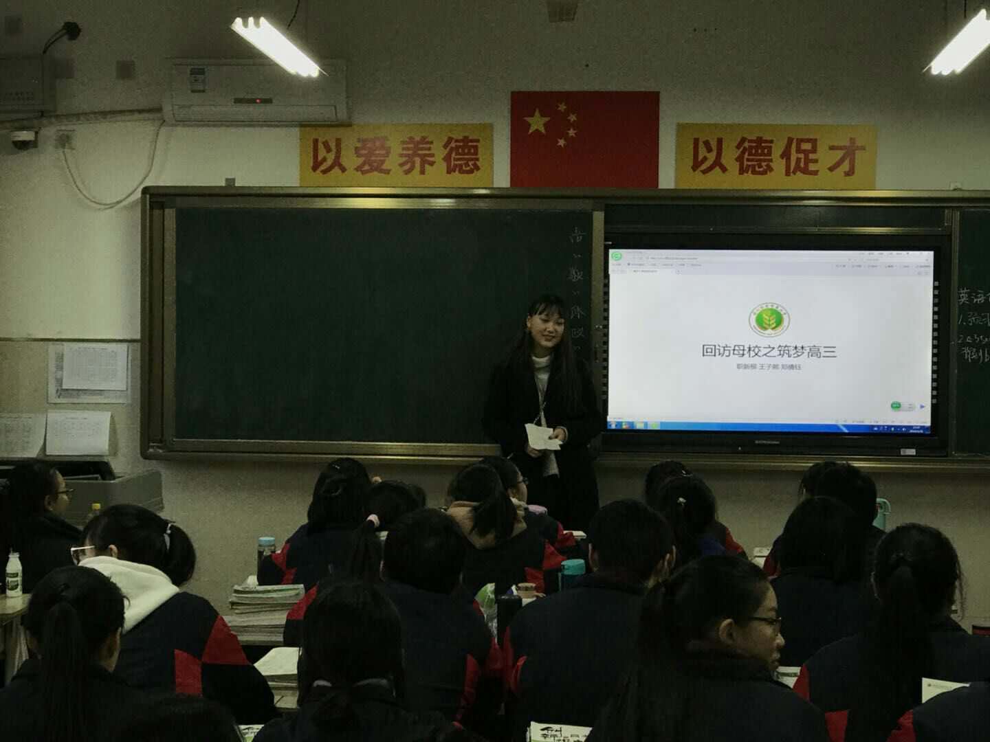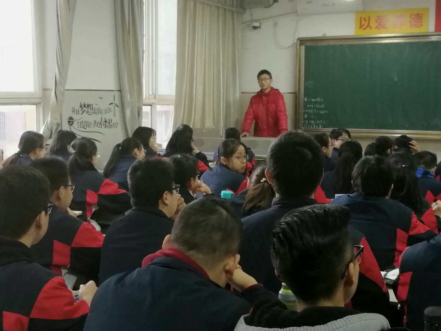 接下来,我们来到了高三一班——文科班,我在这里作完自我介绍后又详细地介绍伟德bv1946。老师们也为我们的到访感到欣慰,我们三人在这里收获了快乐,收获了经验,满载而归。