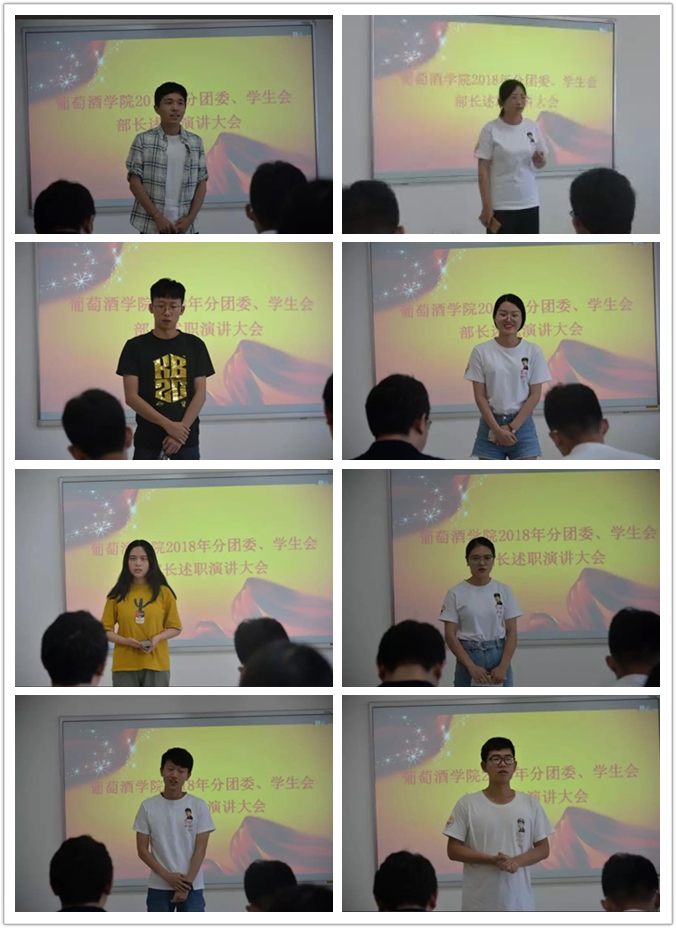 本次大会经学院团组织推荐、个人自荐,各个部门的候选部长均身着院服展开了述职演讲,参与本次竞职演讲的成员将就学院新闻中心,纪律检查部等12个部门展开竞选。各部门候选部长在述职演讲中分享了自己员工工作经验、表达了自己对于部门建设及学院工作建设的决心;并且就各部门未来发展以及下一学年工作安排分别发表了自己的工作规划。会议中,学院分团委书记赵老师以及新任主席团成员耐心认真地听了每个部门候选部长的述职演讲。最后,院分团委书记赵老师对本次述职大会做了精彩的点评和总结,并鼓励新一届员工干部领导核心“撸起袖子加油干”,为学院新的一年的工作建设添砖加瓦。会后主席团成员对各部门职能的具体分工进行了提问与了解。