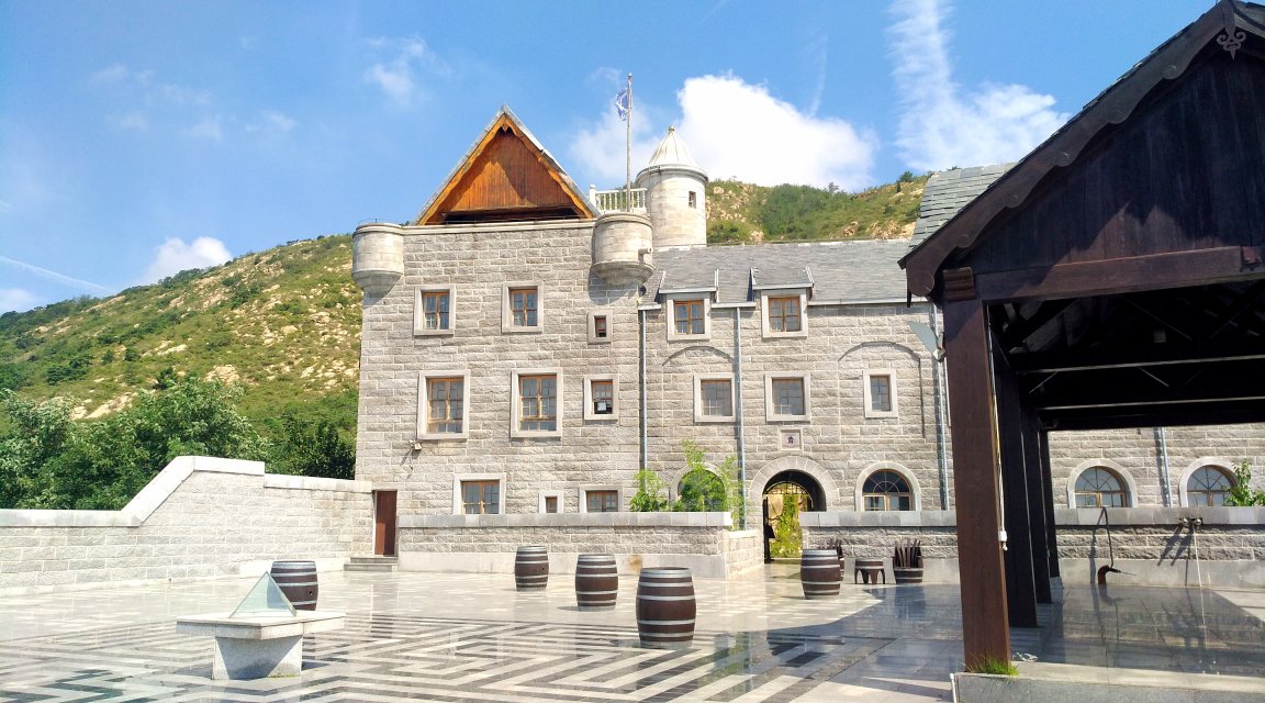 进到生产车间里,负责人向我们介绍说,酒厂依山而建,所以有的地方能看到巨大的岩石,生产出的葡萄酒采用国际先进的双层罐发酵技术和法国进口的葡萄苗木。因为产量不多所以产品只在酒堡内销售和出口。