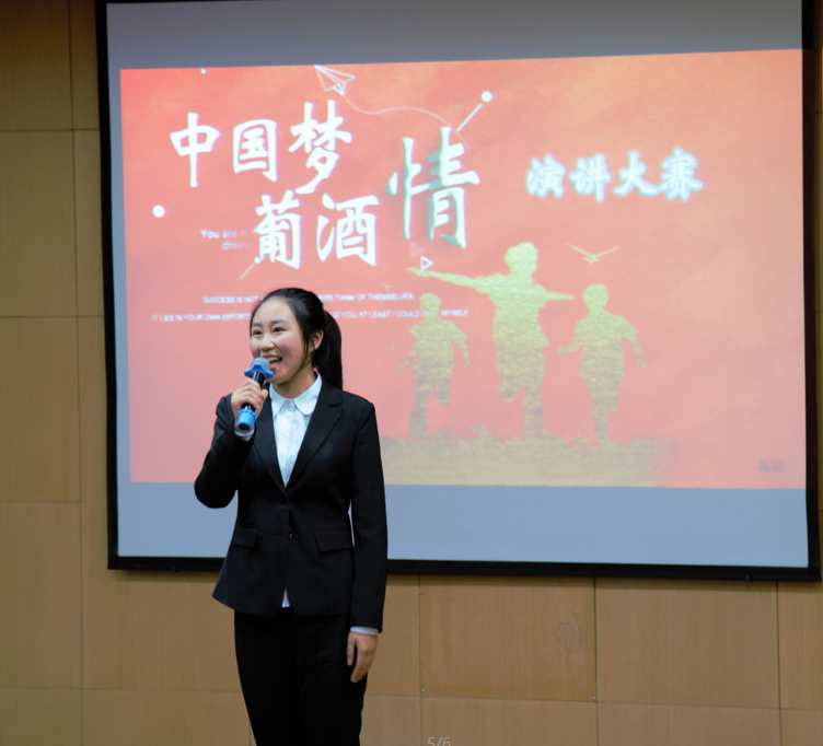 高洁获本次“葡酒情,中国梦”演讲大赛一等奖;郎天琦、史晶晶、李嘉颖获二等奖;靳梦洁、何璐瑶获三等奖;叶冠宏、徐文睿、职瑞佳、蒋俊彦获优秀奖;郎天琦获最佳人气奖。