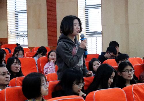 周雍进先生主要的研究方向是微生物合成生物学和代谢工程,并取得了可观的研究成果。他向在场师生介绍了自己在研究微生物工厂的过程中,是如何屡屡在“山重水复疑无路”的困境中涉水而出的。同时,也向大家介绍了微生物方面国际前沿的研究成果,例如青蒿素的合成等。之后又敞开心扉,讲述了自己的求学之路。他讲到,人生路上面对着很多选择,不管是主动的还是被动的,既然选择了,那就要努力做好。他大学时期跌跌撞撞,在碰壁和收获成果之中,渐渐萌生了以分子机制研究食品的想法,并一直走了下去。如今,他在微生物研究领域的一线已拥有一席之地,多篇论文发表在国际学术周刊,各项成果得到广泛肯定和赞誉。