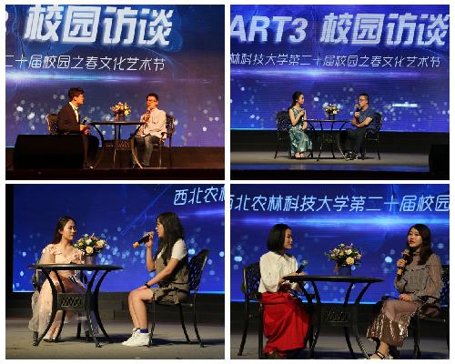 最终对决的校园访谈环节中,选手们需要即兴采访4位校园风云人物——“百名研究生党员标兵”鞠延仑博士、“学霸”王艺霖、“创业先锋”姜义亮博士、“优秀毕业生+校园主持人”蔚佳琦,考验了选手的临场应变能力与个人文化素质底蕴,更挖掘了西农学子积极奋进的榜样事迹,讲述“西农追梦人”的故事,传播青春力量。