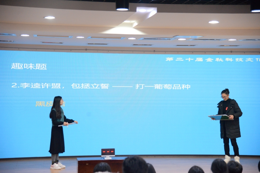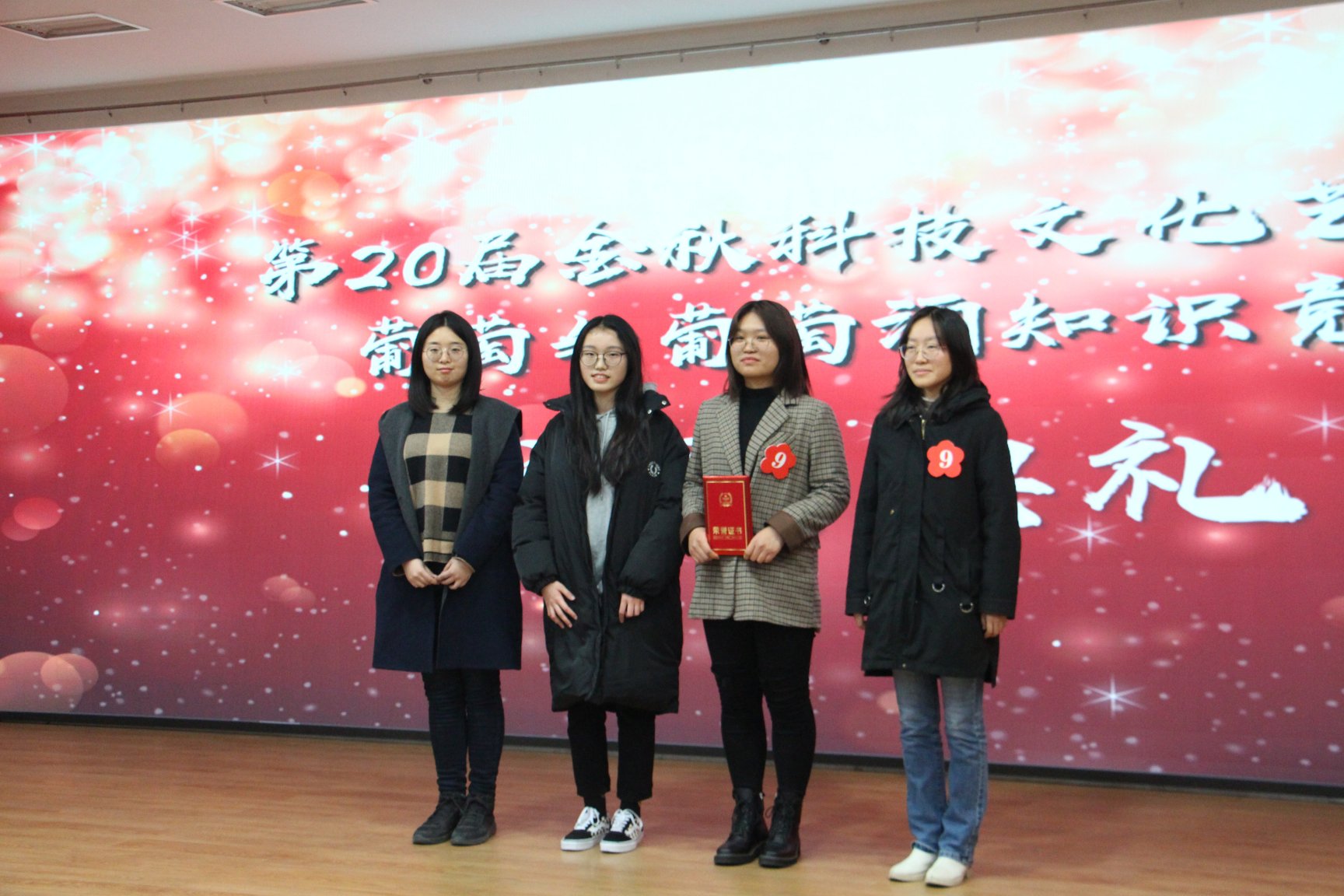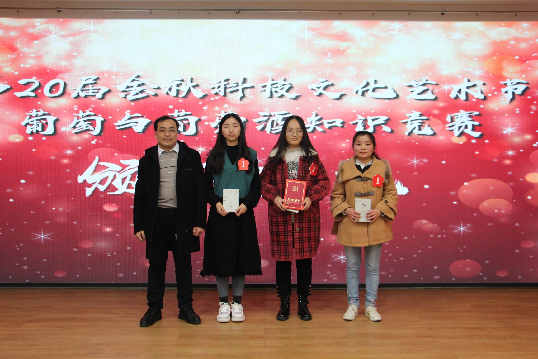 为弘扬葡萄酒文化,传播健康生活理念,拓展老员工视野,丰富校园生活,第二十届金秋科技文化艺术节之葡萄与葡萄酒知识竞赛决赛于12月5日在北绣南报告厅顺利举办,来自葡酒、人文、创新等11个学院共十组选手进入决赛。bevictor伟德官网李甲贵副教授、孟江飞副教授、姜娇担任比赛仲裁评审,校团委副书记穆军全、葡萄酒公司党委副书记徐三友出席比赛。