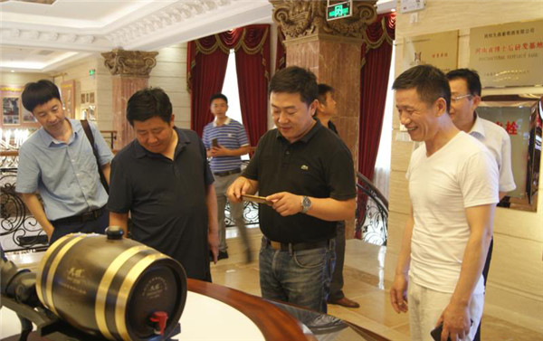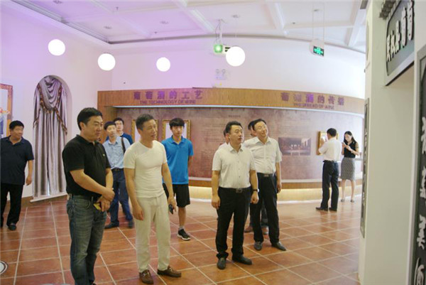 从基地回来后,房玉林一行在朱和平的带领下参观了民权葡萄酒历史博物馆及地下酒窖、葡萄种植示范园、酿酒车间、贮酒车间、灌装车间等地,在参观过程中,朱和平向房玉林一行详细介绍了民权葡萄酒的产品结构、历史文化及生产工艺、地下酒窖的功能设施等。听取了朱总的介绍后,房玉林对民权葡萄酒历史文化的传承、品质坚持、产品设计等方面表示赞赏。