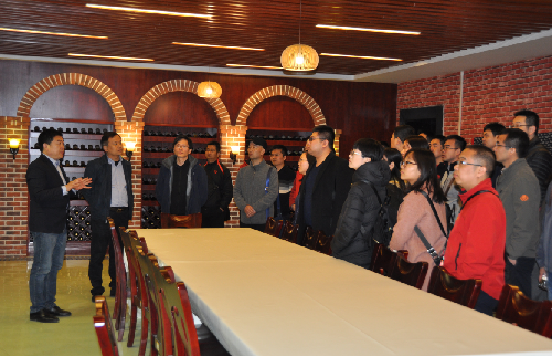 经理房玉林介绍了学院发展历史、团队队伍建设、人才培养模式、科研推广、国际合作与交流等方面的内容。在综办工作人员的组织下,房玉林陪同来访客人考察了教学实验示范中心、地下酒窖等。
