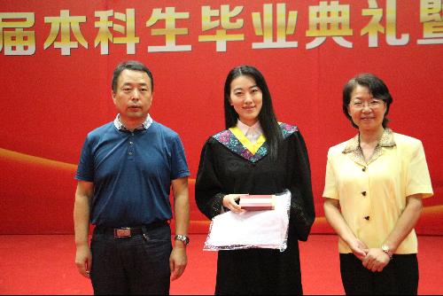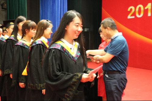 典礼第三项、第四项分别是毕业硕士研究生代表谢沙同学、毕业本科生代表曹杰同学发言。他们同时表达了对师生情、同窗爱的难以忘怀,对未来生活的美好憧憬。时光凝结在他们的一字一句中,没有华丽的辞藻,没有雄壮的誓言,只有一片真情缓缓流泻。他们说,自己永远不会忘记自己从哪里来,不论到哪里去,此时此景都将铭刻在心。