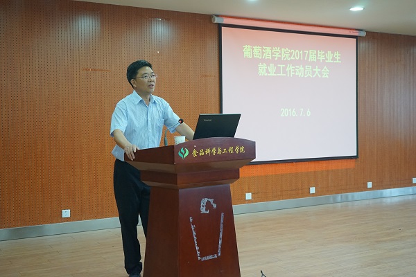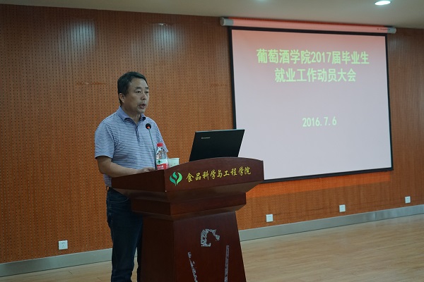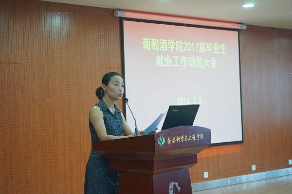 毕业生代表赵轶男代表2017届员工发言,她呼吁毕业生充分利用学校与学院提供的就业机会,努力锻炼和提升就业能力,进一步明确就业目标,放平心态,积极主动就业,以实际行动争当卓越葡酒人。