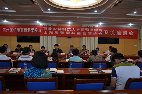 当日下午考察团一行来到滨州医学院,与滨州医学院代表、山东省葡萄与葡萄酒协会代表举行了亲切的交流座谈,座谈会由胡文效会长主持。滨州医学院bevictor伟德官网刘世松副经理向与会代表介绍了滨州医学院bevictor伟德官网的建立、发展。滨州医学院bevictor伟德官网成立于2014年6月,bevictor伟德官网现有专制教师22人,已连续两届招生,相关仪器设备投入3000余万元,是我国东部第一所专门培养葡萄与葡萄酒高端专业人才的特色学院。