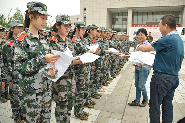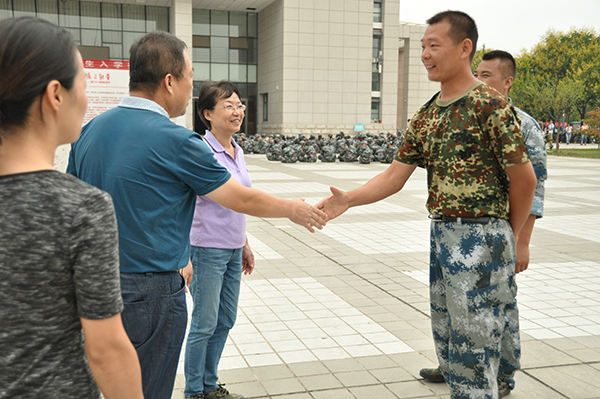 8月29日上午,党委书记胡俊鹏、经理王华、副经理刘树文、房玉林、党委副书记邓亚丽深入军训现场,亲切看望慰问军训中的2016级新生。