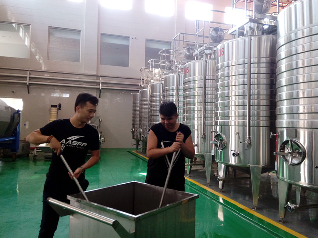 9月6日上午,在酒庄的精心安排下,实习团队参观了酒庄的基地,农业生态园,生产车间,生产相关设备,酒窖等,解说员详细介绍了公司的现状,目标定位,发展过程,文化传承,并向师生展示了公司的一系列葡萄酒产品。最后,董新义工程师对实习期间的任务安排和注意事项等做了强调和说明。
