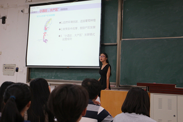 答辩会上,各个社会实践团队结合PPT展示,分别从团队社会实践基本情况、信息报送情况、基地建设情况、实践内容及成效等五个方面进行阐述。评委们本着公平、公正、公开的原则,根据各个团队提交的总结材料以及现场展示情况进行了评审。最终,“走进银川,寻访酒庄”调研队,bevictor伟德官网赴弥勒产区调研队,赴甘孜州葡萄酒市场调研队。“饮酒游庄,梦游东莱”酒庄实践队,bevictor伟德官网赴渭南葡萄栽培实践队等5支荣获优秀团队资助。