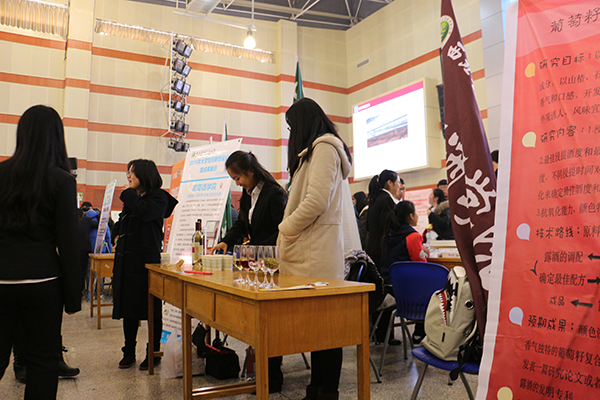 与学院特色展板一同展出的还有两项科创项目,它们分别是基于底物压力的共轭亚油酸(CLA)生产菌的筛选与鉴定以及葡萄籽复合露酒的开发。这两项科研项目凝聚了公司师生的创意和心血。充分地展现了公司在创新创业领域取得的突破性进展。