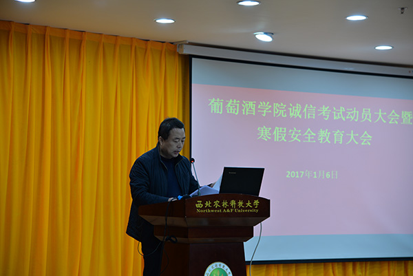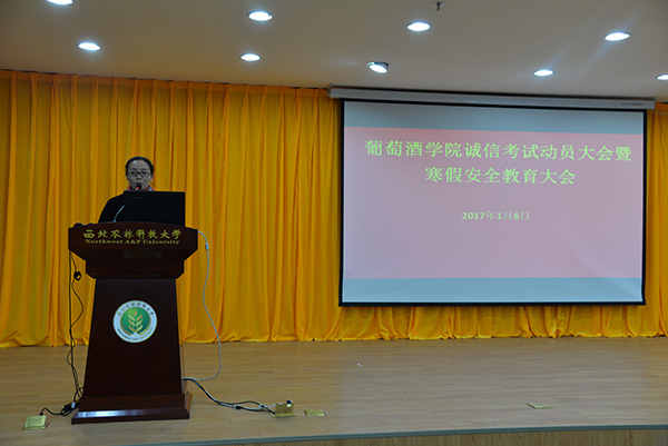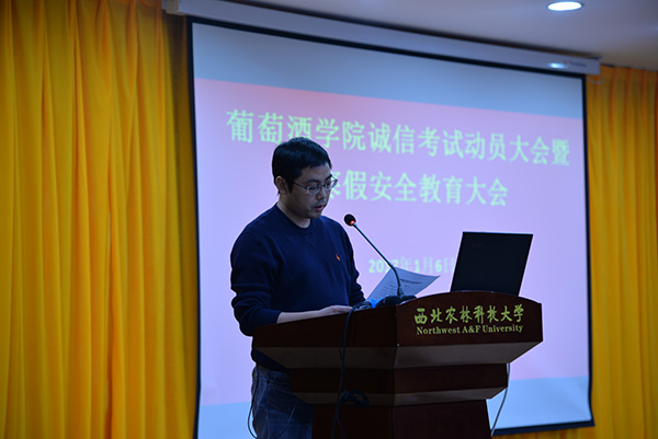 最后,房玉林经理作诚信考试动员。房经理通过讲述真实案例,向同学们生动阐释了考试违纪与作弊其后果的严重性,他要求同学们自觉遵守考试纪律,践行“耕土耕心、酿酒酿人”的院训精神,诚信考试、诚信做人,考个好成绩并带着学院对大家寒假安全的叮咛和嘱托,平安回家开心过年。