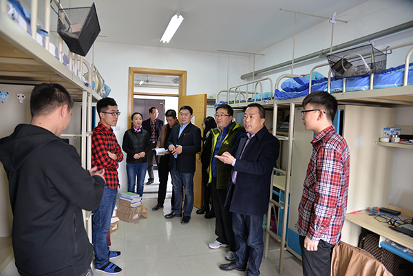 在宿舍,胡书记、房经理详细询问了员工的寒假生活状况,欢迎同学们按时返校开启新学期的学习和生活。胡书记强调,春季学期适合锻炼,希望同学们在完成学习任务的前提下,走出宿舍、走下网络、走向操场,多参加有益身心健康的阳光体育运动,以更加昂扬的状态投入学习和生活。
