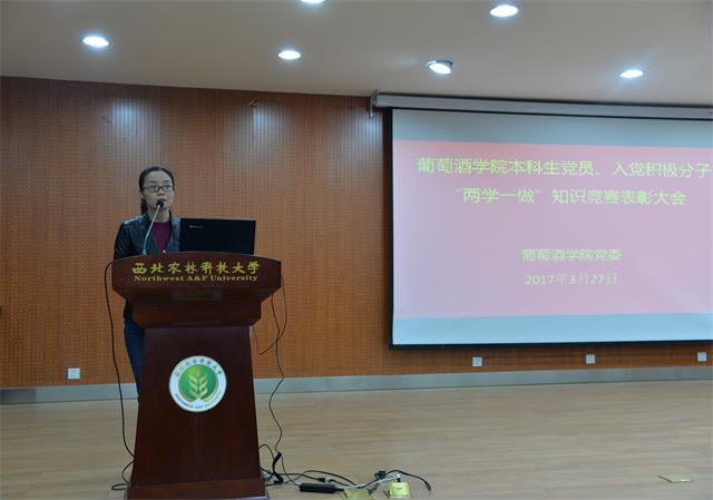 3月27日晚19:00,bevictor伟德官网2016年本科生党员、入党积极分子“两学一做”知识竞赛表彰大会于食品-葡萄酒大楼六层报告厅成功举办。公司党委书记胡俊鹏、副书记邓亚丽、老员工党支部书记刘旭、全体辅导员及获奖员工参加大会。会议由邓亚丽副书记主持。