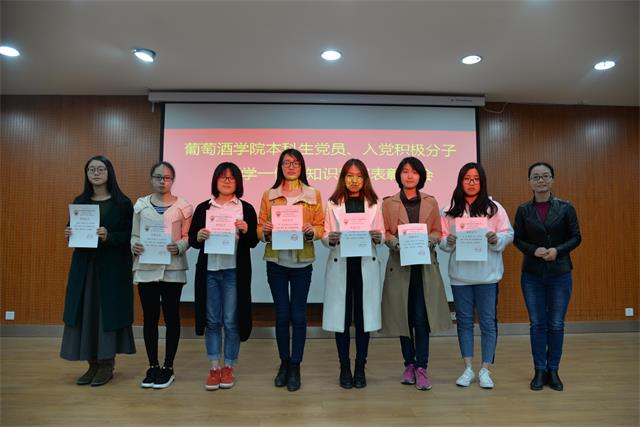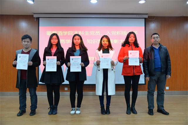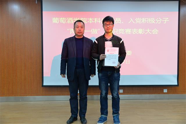 最后,胡俊鹏书记在讲话中强调,开展“两学一做”学习教育,基础在学,关键在做,学与做是相辅相成、不可分割的。抓学习是为了改造主观世界、提升党员行动自觉,促行动是学习教育的着眼点、落脚点,必须以学促做、知行合一。胡书记希望获奖员工能在学院及学校各项工作中发挥模范带头作用,以优秀党员的标准和优秀入党积极分子的行动自觉引领全院员工积极进取、奋力成才,做知行卓越的葡酒人。