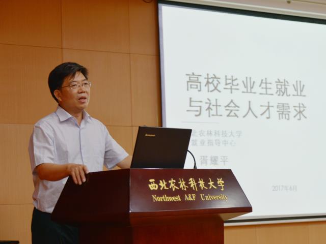会上,胥耀平主任为同学们精心准备和详细解读了《高校毕业生就业与社会人才需求》的专业报告,从国家层面分析了当前严峻的就业形势、就业环境和就业氛围,并针对就业相关政策进行了全面讲解。胥主任还从心理、简历、信息、资源四方面的准备工作对毕业生提出了贴心的具体建议与要求。最后,胥主任希望毕业生能带着西农人特有的自信,以共赢为原则,做到信息共享,良性竞争,最终诚信签约、诚信就业。