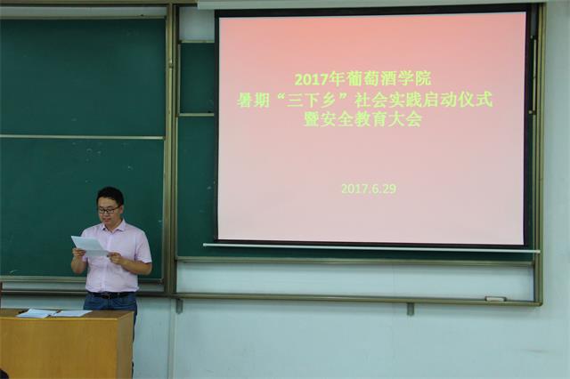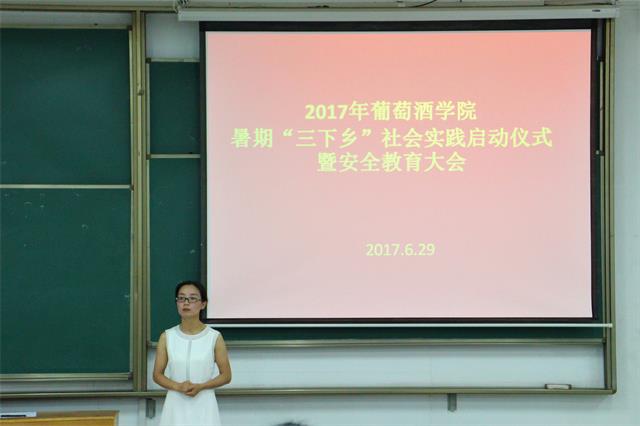 启动仪式上,赵星宇老师介绍了学院暑期“三下乡”社会实践活动的组队情况,本次活动以公司员工为主体、各院员工为补充,员工自发组建了13支团队,经学院审核答辩,其中10支团队获学校立项,3支队伍获院级立项。李雅男老师宣读了《bevictor伟德官网老员工暑期“三下乡”社会实践项目考核暂行规定》,使同学们进一步明确了“三下乡”实践活动的量化考核指标和规范。分管社会实践的员工会副主席李享远带领队员们全文学习了《伟德bv19462017年暑期社会实践安全责任书》的全部条款,引导员工树立安全实践意识,确保各项实践活动在安全的前提下顺利开展。校级 “三下乡”社践团队队长靳思雨代表“三下乡”社会实践的全体同学郑重承诺:牢记实践安全,追求实践成效,以良好形象和实际行动展现葡酒学子风采。