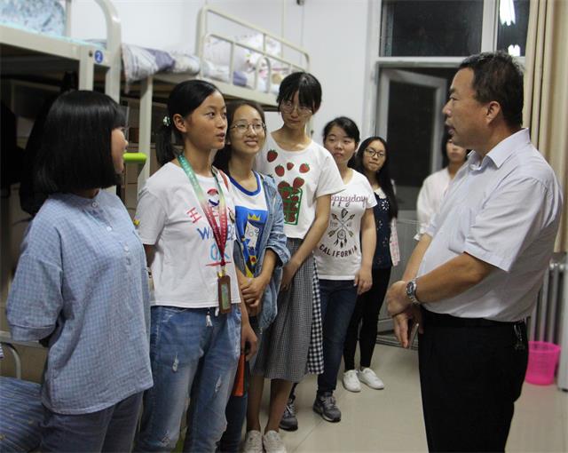 26日晚,胡俊鹏书记一行来的西区17号楼男生宿舍和15号楼女生宿舍看望新生,胡书记详细询问了新生对于大学的新感受,有什么特长,家来自哪儿,一句句亲切的关怀,让员工倍感温暖,宿舍内气氛十分融洽。胡书记嘱咐员工要处理好宿舍成员关系,尽快转变角色,调整好状态投身难得的军训锻炼,练就坚强的意志和品格,为随后的学习和奠定良好基础。新生们也争先恐后的介绍了自己报考专业的初衷,并希望通过自己的努力学好自己喜欢的专业,实现自己的大学梦想。