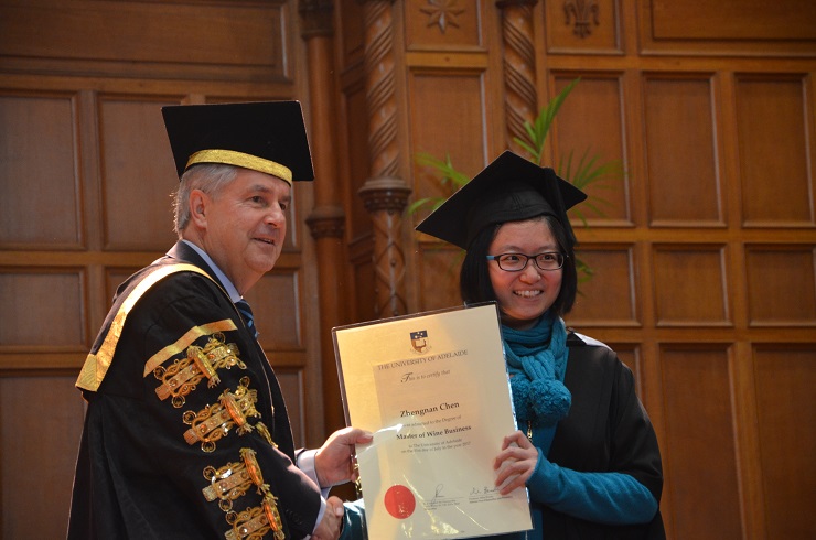 阿德莱德大学董事长为陈正楠同学颁发葡萄酒商务硕士学位证书