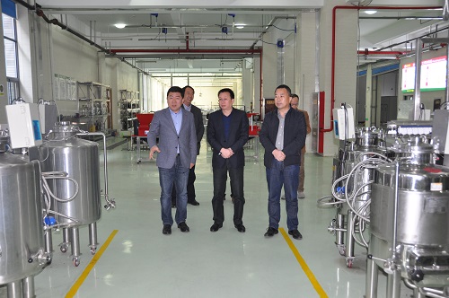 新疆石河子大学食品学院雍会书记一行在公司经理房玉林、党委书记胡俊鹏的陪同下对学院新大楼进行了考察,对学院大楼整体布局和功能使用情况以及学院教学、科研平台情况进行了详细介绍。