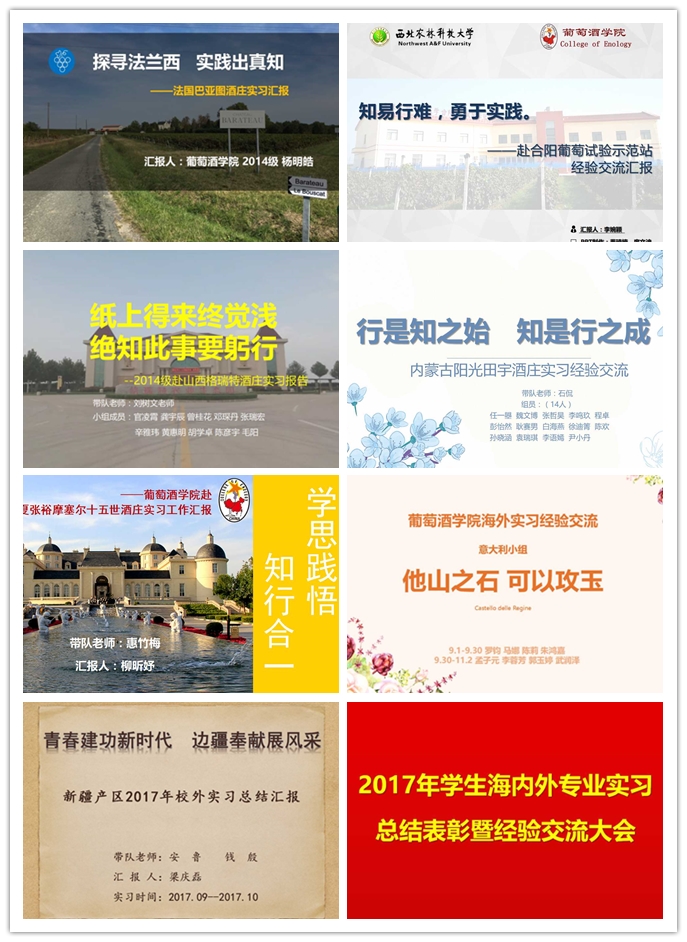 副经理刘树文在总结2017年葡萄酒工厂生产实习工作中指出,学院以员工为中心构建了覆盖“从土地到餐桌”所有环节的实践教学运行体系,在国内外建立40余个教学实践基地,全面支撑了具有国际就业能力培养的人才发展模式。2017年共有130名员工参加海内外专业实习,其中22人赴海外实习创历史新高,员工足迹遍布国内外主要葡萄酒产区,包括法国、意大利以及新疆、内蒙古、宁夏、山西、北京五省。