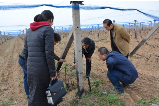3月20日,在学校扶贫办的组织下,胡俊鹏书记和合阳葡萄示范站驻站专家张鹏来到合阳县坊镇开展科技产业扶贫的对接工作。在坊镇董亚斌书记、雷博镇长、王亚宁副镇长、于乾落村挂职第一书记韩锁昌同志以及在坊镇挂职科技副镇长的公司硕士研究生李婉平副镇长的陪同下,胡俊鹏书记一行人来到合阳葡萄试验示范站、坊西村红提产业园区、灵井村红提产业园区、合禾红提葡萄种植专业合作社以及乾落村社区正在规划的红提葡萄示范园进行现场调研。在调研当中,胡俊鹏书记亲切地向红提种植户代表询问了生产当中遇到问题,详细地了解了坊镇扶贫攻坚工作的相关内容,总结出贫困户目前面临着葡萄栽培技术短缺、市场开发能力较弱、抗风险能力较差等突出问题。