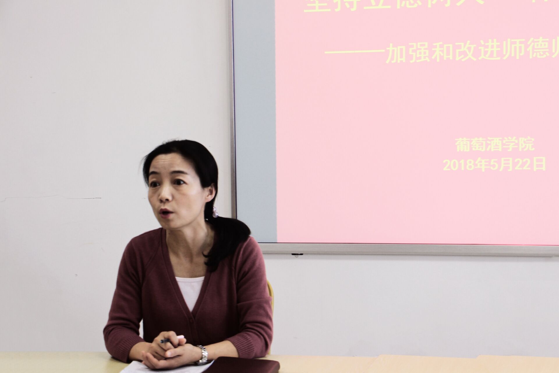 为进一步加强和改进师德师风建设,全面落实立德树人根本任务,助力公司"双一流"建设。5月22日下午,葡萄酒公司党委副书记邓亚丽与员工面对面,听取员工对学院师德师风建设工作中意见和建议。辅导员朱美蓉及40余名本科生、研究生代表参加会议。
