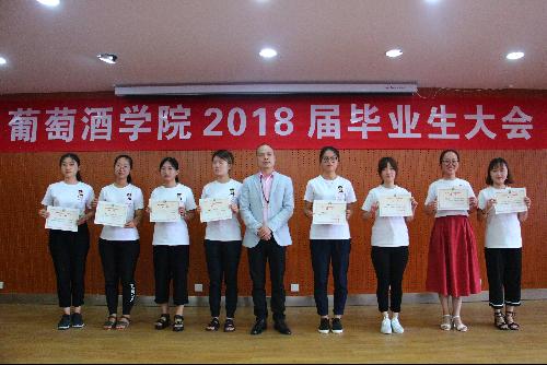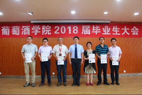 大会还对先进个人进行了表彰。刘树文副经理为2018届兼职员工联络员颁发聘书,王华教授为获华王NO.1奖励金的员工颁发证书,杭州酒仙贸易公司董事长叶志远先生为获萨意.卓越葡酒人培育基金的员工颁发证书,胡俊鹏书记为学院2018届优秀毕业生颁发证书,房玉林经理为获得经理基金奖励的教师颁发证书及奖金,李华教授为获李华科研创新奖学金的员工颁发证书及奖金。