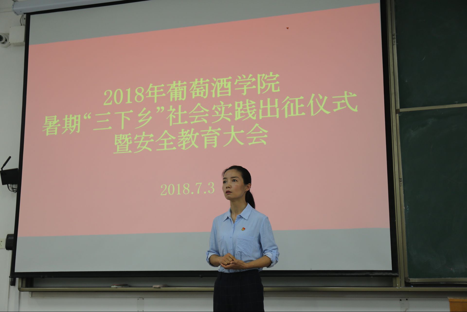 党委副书记邓亚丽老师贴心地为各队伍发放了医疗包后,对暑期社会实践工作提出四点要求,一是全面认识社会实践的重要意义。社会实践是了解社会、认识社会的重要途径,是专业学习和实践教育的重要组成部分,作为对实践能力有较高要求的葡萄与葡萄酒工程专业的员工,应抓住一切机会积极投身实践锻炼,通过实践了解社会、认识专业、成长自我。二是做足行前“功课”,提高实践项目执行能力。每支队伍在出发前结合各自实践目的和要求,按照“科学谋划、目标管理、信息在线、过程控制”的原则,细致做好资料查阅、人员分工、路线攻略、经费预算等工作,确保学校、学院支持项目经费的合理开支和实践育人目标的全面实现。三是展示个人良好素养,做密切学院和员工关系的使者。实践活动一如既往得到了行业企业和广大员工的鼎力支持,每一位实践成员都是bevictor伟德官网的名片和代言人,要在实际锻炼过程中展示良好的素质和形象,积极联络员工情感,全面采集员工信息,为员工信息更新做贡献。四是提高安全意识,出行安全牢记于心。实践时间正值各地雨季,各团队要密切关注实践地天气状况,做到灾害性天气不出行。实践时间也正值酷暑,全体成员要高度重视饮食安全,不喝冷冻饮品,不吃冷凉食品,用健康的身体确保实践工作顺利开展,做到安全实践,载誉而归。