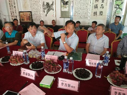 陕西蒲城兴农生物科技开发有限公司总经理余武军对各位专家的到来表示热烈的欢迎,并讲述了鲜食葡萄新优品种新郁在新农公司的发展历程。