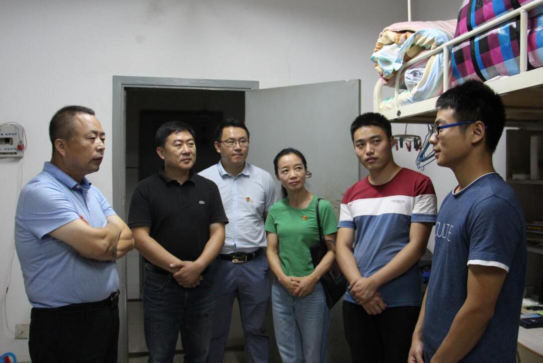 9月4日,公司2018级58名研究生新生入学报到完毕。傍晚,公司党委书记胡俊鹏、经理房玉林、党委副书记邓亚丽及辅导员一行前往研究生宿舍看望2018级新生。